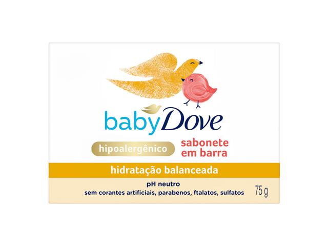Diferentemente de outros sabonetes em barra comum de bebê*, o Sabonete em Barra Baby Dove Hidratação Balanceada é enriquecido com 1/4 de creme hidratante, mantendo a pele delicada confortavelmente macia. Contém perfume especialmente desenvolvido para peles sensíveis e é suave até para o primeiro banho. Ajuda a proteger a barreira natural da pele do seu bebê e a repôr nutriente essencial que a pele sensível do seu pequeno perde durante o banho, dando a ele o cuidado que ele precisa e ajudando a deixar sua pele nutrida e hidratada.