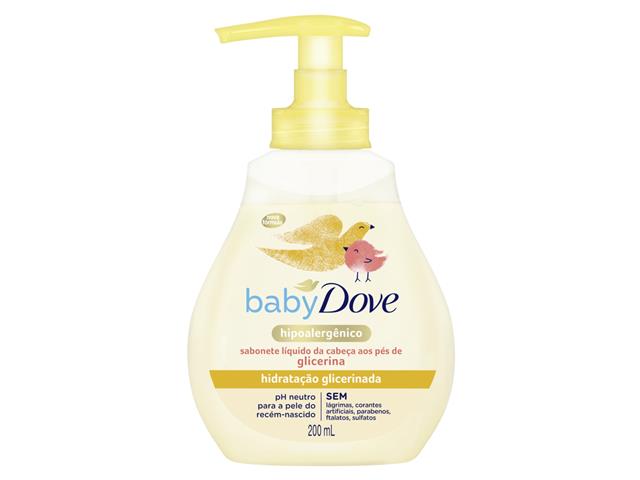 Nosso Sabonete Líquido da Cabeça aos Pés de Glicerina Baby Dove é hipoalergênico e ajuda a manter a pele saudável desde o primeiro banho do recém-nascido. Comprovadamente minimiza os riscos de alergia com um perfume desenvolvido para a delicada pele do bebê. A hora do banho com seu bebê é especial e, por isso, sabemos que você quer o melhor sabonete líquido para esse momento. Como a pele do bebê é mais fina do que a de um adulto, ela precisa de um cuidado mais delicado. Com glicerina e nutrientes naturalmente encontrados na pele do bebê, ele vai além da limpeza suave, esse produto ajuda a repor os nutrientes essenciais e a hidratação que a pele pode perder durante o banho. Antes de dar o banho no seu bebê que tal limpar primeiro as Toalhas Umedecidas Baby Dove? Elas ajudam a remover as impurezas com suavidade, deixando a pele do bebê ainda mais saudável. Experimente também hidratar o corpo do seu pequeno pelo menos duas vezes ao dia com uma fórmula suave e hipoalergênica como a das Loções Baby Dove. Testado por oftalmologista, dermatologista e pediatra. Modo de uso: Aplique uma pequena quantidade nas mãos, ensaboe delicadamente a pele e o cabelo do seu bebê. Enxágue em seguida.